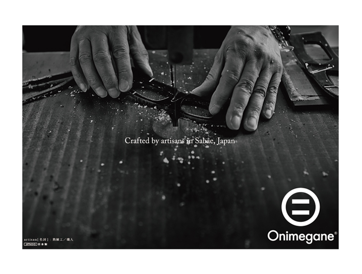 artisanとは「職人」のこと。めがねの一大産地鯖江に誇り持ち、職人の手によって品質にこだわって作られています。"Crafted by artisans in Sabae, Japan"という言葉は、オニメガネの全てのフレームに印字されており、ブランドの誇りと覚悟を感じることができます。