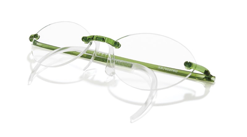 Swissflexの掛け心地をサポートしている重要な要素は、軽さだけではなく、顔にパーフェクトにフィットするよう開発された多種多様なパーツ類。そして、曲げに強く、優れた弾力性を持つ特殊樹脂素材の特長が軽さをさらに引き立たせ、鼻や耳への負担を大幅に軽減させ快適さを保ちます。