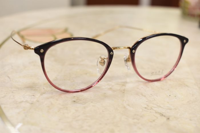 こちらは金子眼鏡とコラボした弊社オリジナルフレームなのですが、細部までこだわりを持って作っており、デザインや色合いも、かけやすく、カッコいい仕上がりになっております。