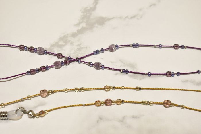 ガラス製の小さなチェコビーズ&鮮やかなナイロンのコードの組み合わせが魅力的です