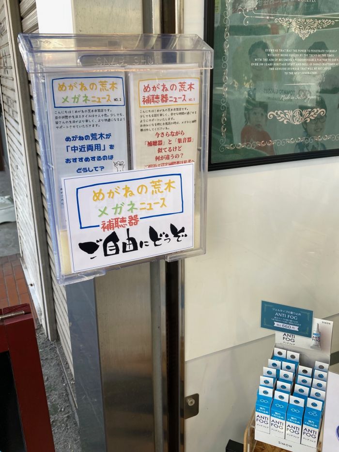 店外にも「めがねの荒木ニュースセット」を置いていますので、